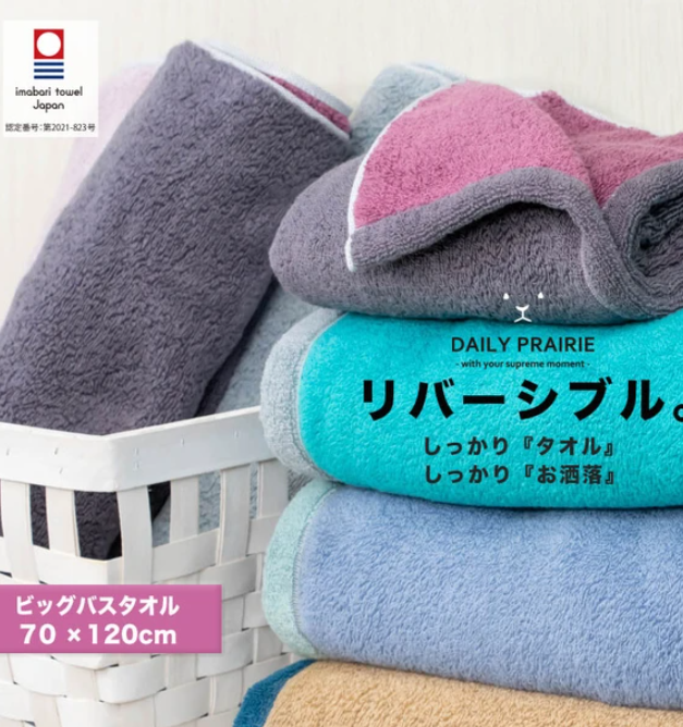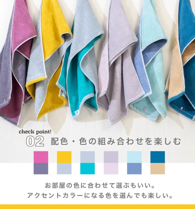 這種可翻轉的毛巾很時尚,可以根據你一天的心情來使用,正面和背面的顏色不同。毛巾所用的紗線比普通紗線更細,通過將兩股紗線纏繞在一起,就形成了柔軟和蓬鬆的質地。