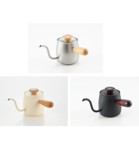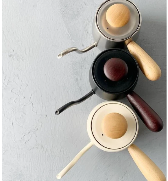 圓形手柄握感舒適,旋鈕可防止咖啡從壺嘴流出。圓形手柄握在手中非常舒適,旋鈕可防止咖啡因熱水而變熱。