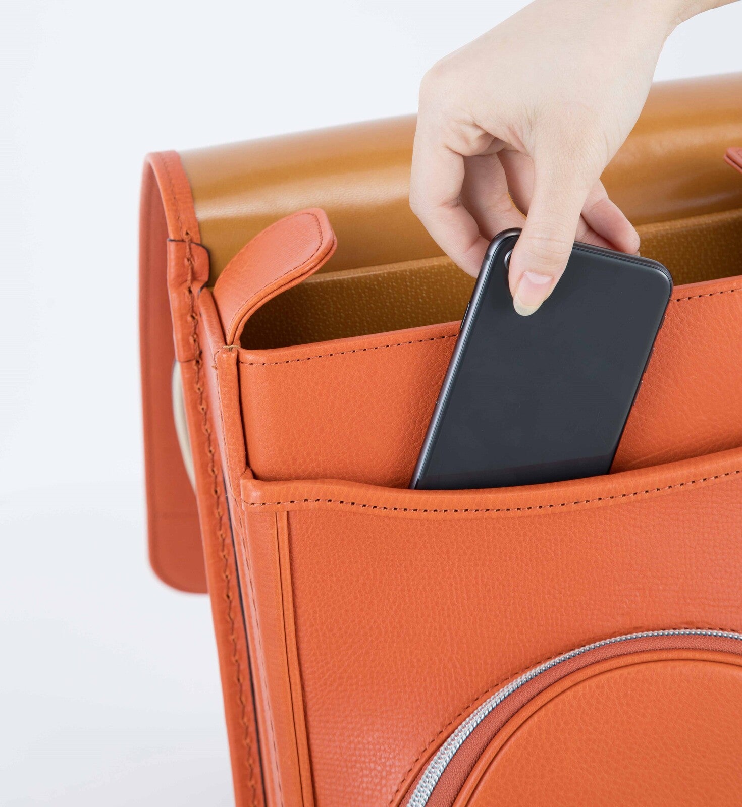 使用的材料是豪華的義大利亞利桑那皮革。它柔軟而耐用,你越是使用它,它的光澤度就越高,你可以享受到更多的樂趣。你用得越多,它就越有光澤,你就越能享受它隨時間的變化。