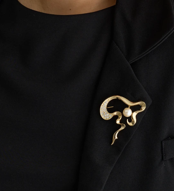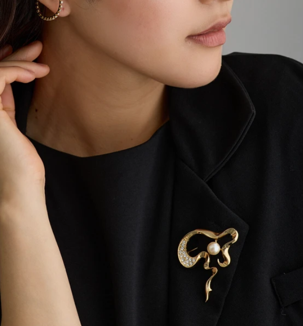 這款金屬胸針猶如一筆勾勒出的獨特輪廓。