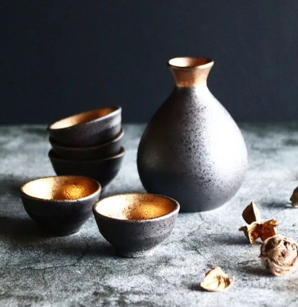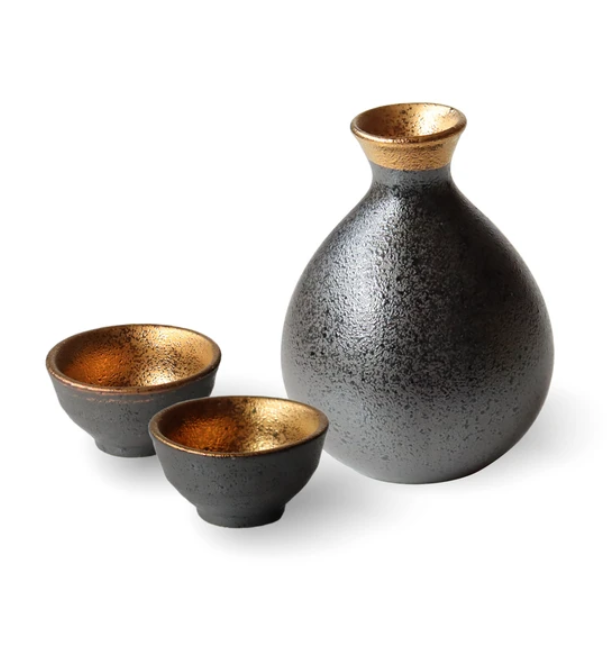 一套包括 1 個可微波爐加熱的 Minoyaki Tokugaru(清酒樽)和 2 個可微波爐加熱的 Inoguchi(清酒杯)。尺寸酒樽:8.5 釐米 x 12 釐米高(約 300 毫升)酒杯:6 釐米 x 3.5 釐米高(約 50 毫升) ;顏色:黑色、金色 ;微波爐:可微波洗碗機:可以烤箱:不適合 ;