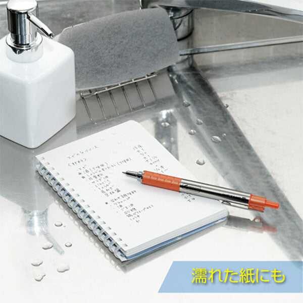 特色:透過對原子筆內部空氣加壓,將墨水推出的機構,可以在傳統原子筆難以書寫的濕紙上書寫,也可以直接在板面上向上書寫安裝在牆上。它是一支可以使用的原子筆。
